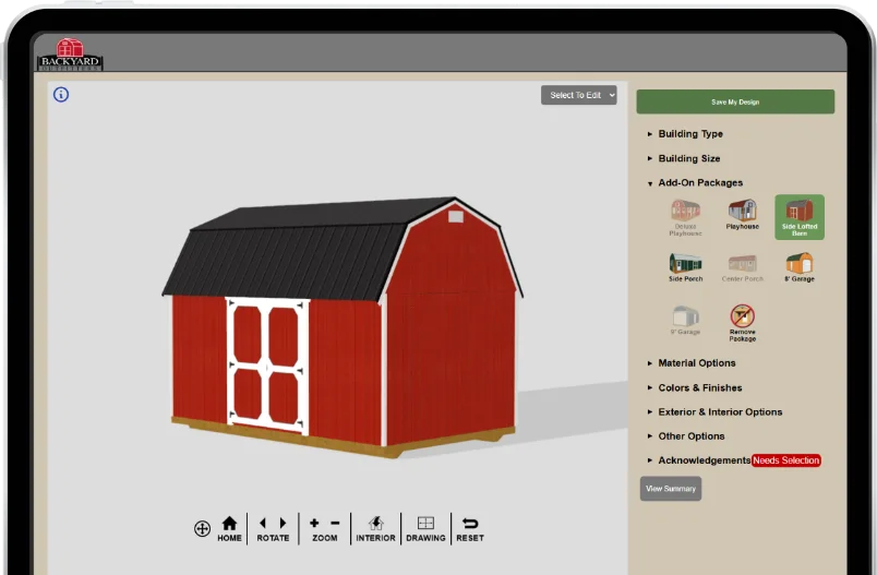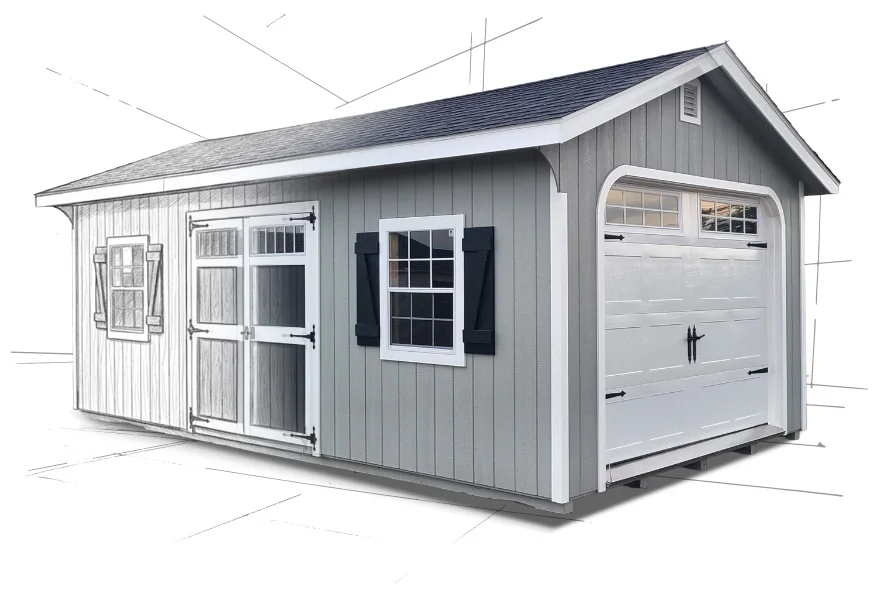 Use our interactive 3D shed builder to create a structure that fits your exact needs. Customize size, layout, colors, doors, windows, and upgrades, then receive a fast quote with no pressure.